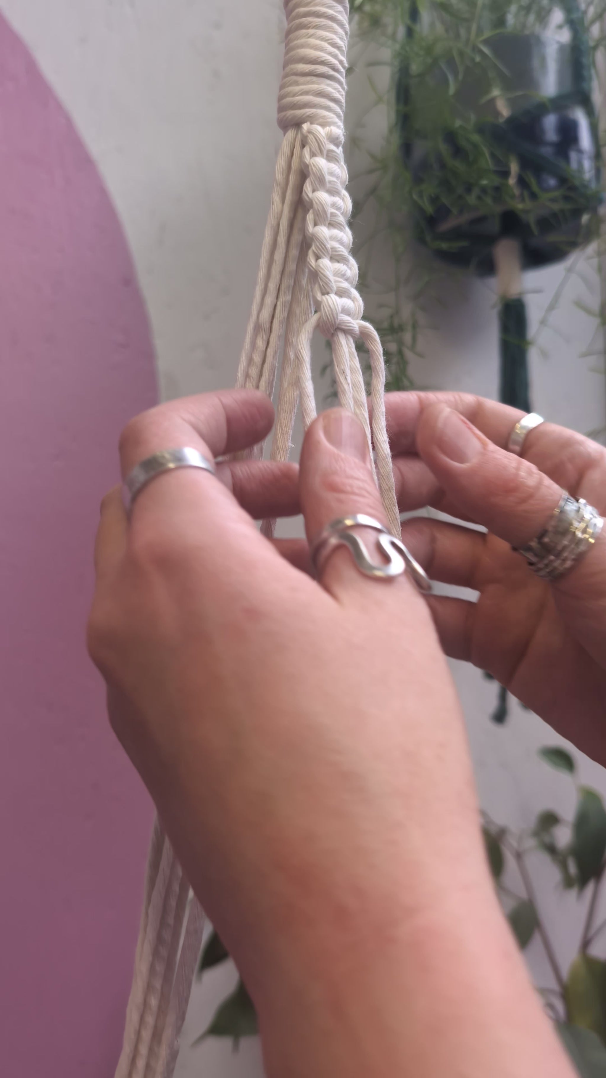 This hanger is really a great quality item. Handmade, the work that has obviously gone into creating this unique hanger is evident. The way the item has been made form the work on the hanging threads to the knotted threads beneath where the plant pot sits is stunning! Definitely exceeded my expectations,I will be back for more! Loved the recycleable packaging and hand written note! Great service and received very quickly!